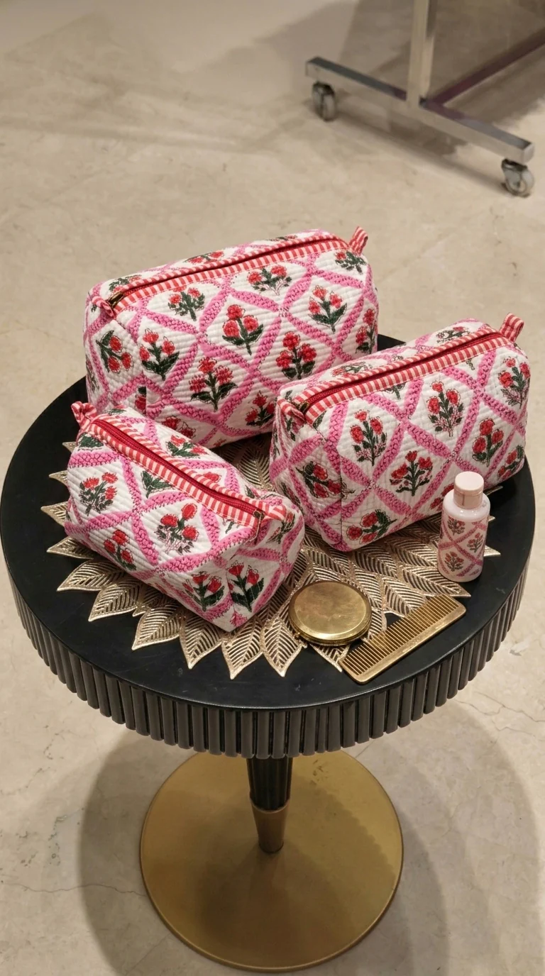 A perfect size to hold you are cosmetics pens or art supplies our stylish Block print makeup and toiletry cases